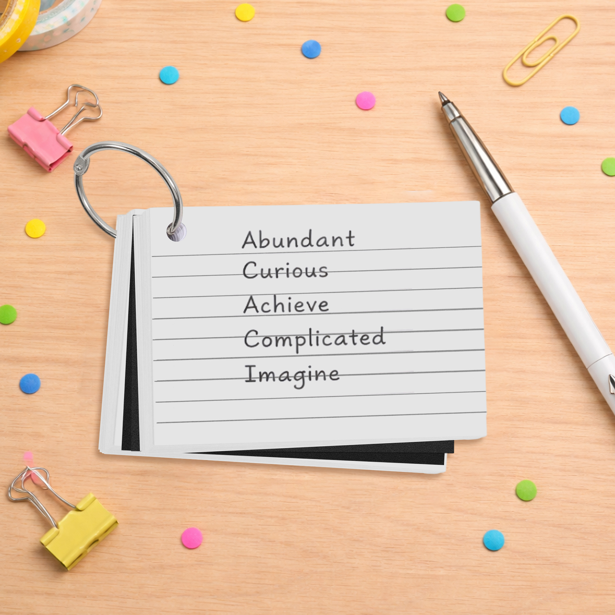 Organise your notes with our A7 Pearlescent Index Cards with Ring, including 50 sheets. Featuring a luxurious 250gsm pearlescent paper cover and 100gsm paper inner sheets, our index cards are available in blank, lined, or grid styles. Personalise the cover with your logos or patterns through Digital UV printing or Hot foil stamping. Additional customisations include custom inner sheets with pantone matching or full colour printed patterns. Suited for study notes, office use, or promotional gifts, our index cards provide a practical way to promote your brand. Sizing: Index cards: 7.4x10.5cm Paper: 50 sheets. Materials: Cover: 250gsm Pearlescent Paper. Inside pages: 100gsm Paper. Price Notes: The pearlescent film applied on the cover surface will cause a colour difference from the Pantone standard. Print Position: Cover (single side) Back cover (single side). Price includes: 9week Hot Foil Stamping. 9week. Setup is included.