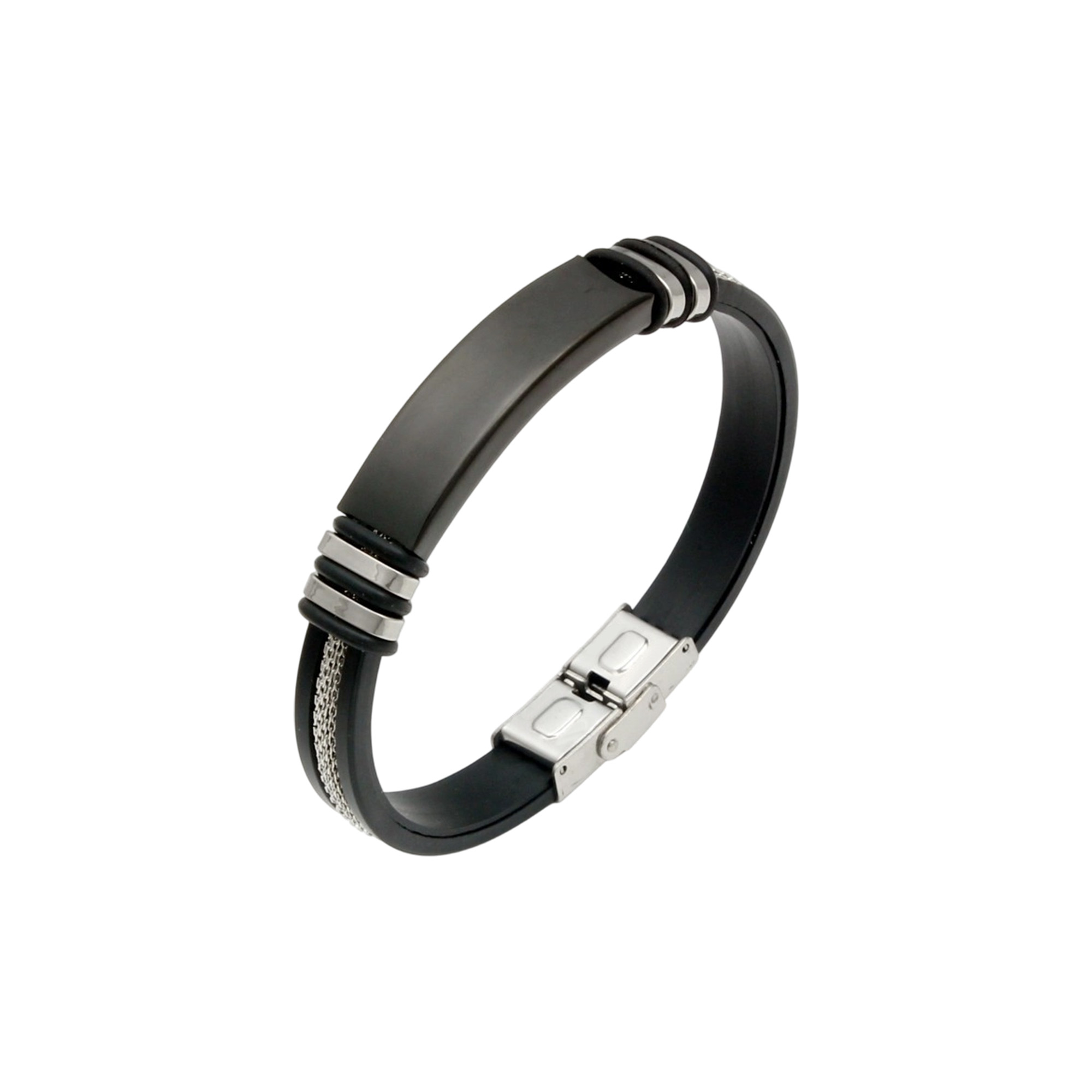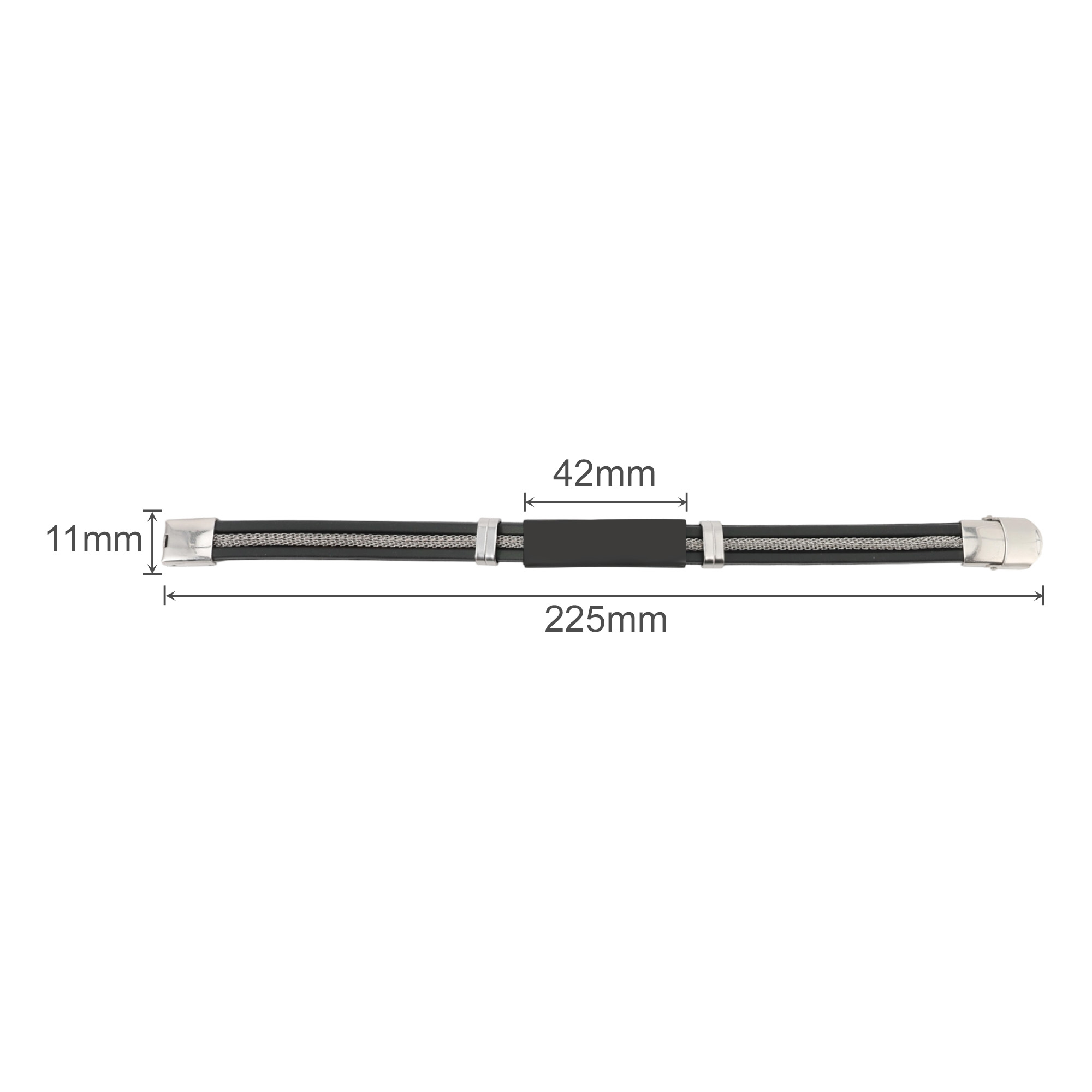 Elevate your brand presence with our Buckle Latch Silica Silver Bracelet, featuring a classic hook buckle for reliable daily wear. Crafted from silicone rubber and metal, our bracelet combines a black strap, a silver core, and a metal arc in silver, black, or gold. Custom logos or brand messages through engraving on the metal arc can enhance the effect of brand promotions. Perfect for sports events, team activities, or promotional campaigns, our bracelet offers both modern functionality and effective brand visibility. Sizing: Silicone bracelet: L225 x W11mm Metal: L42 x W11mm. Materials: Silicone rubber, Metal. Print Position: Metal. Price includes: 4week Engraving. 4week. Setup is included.