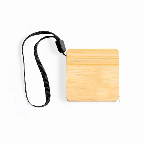 1 m flexometer made of bamboo, with metal blade in centimetres and inches.