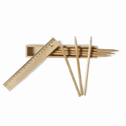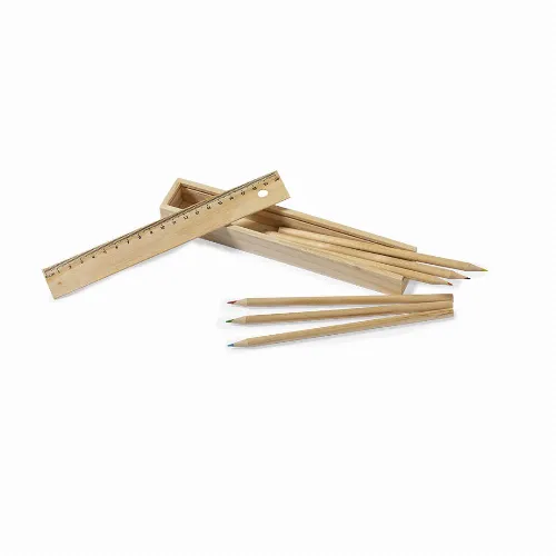 Set of 6 pencils in natural wood case.