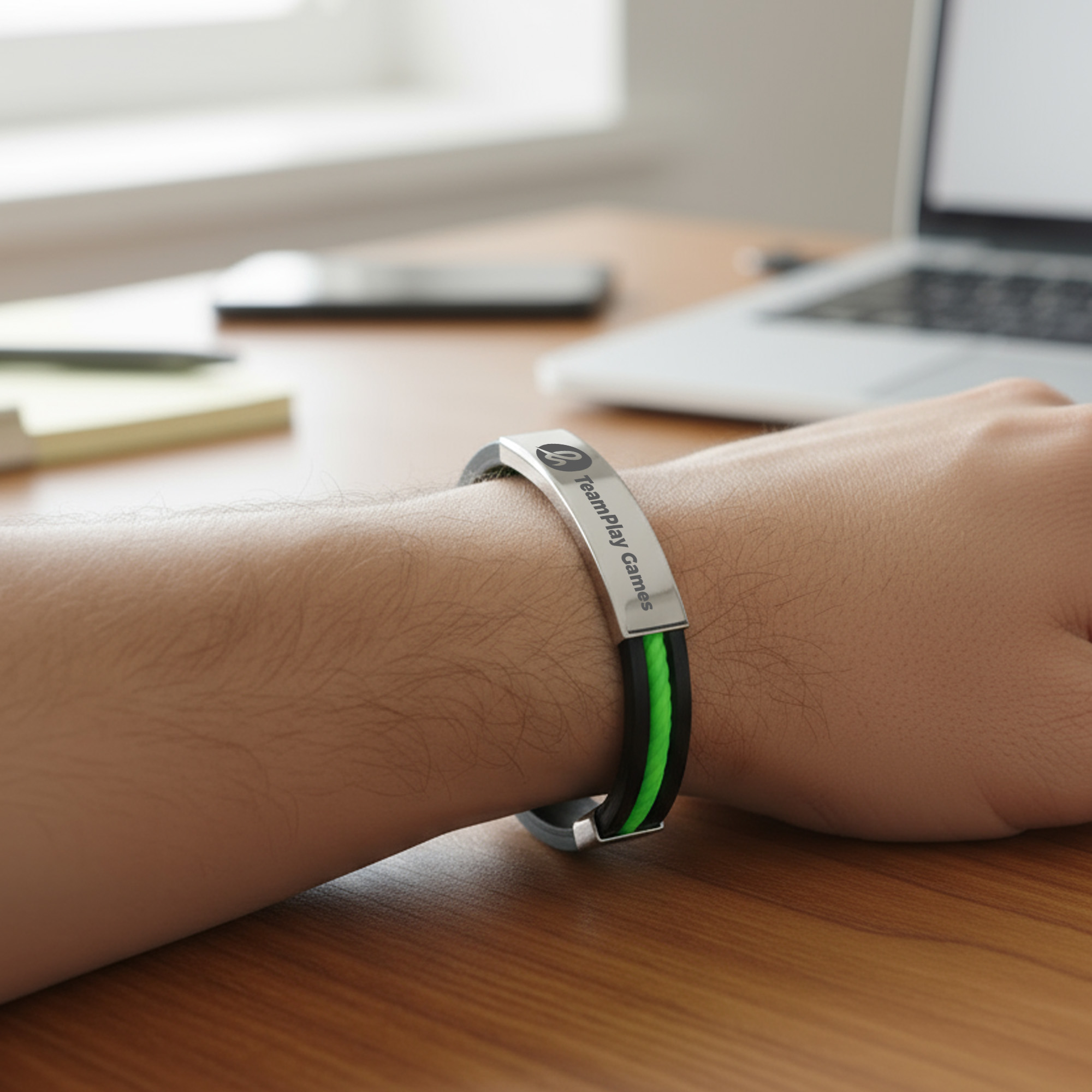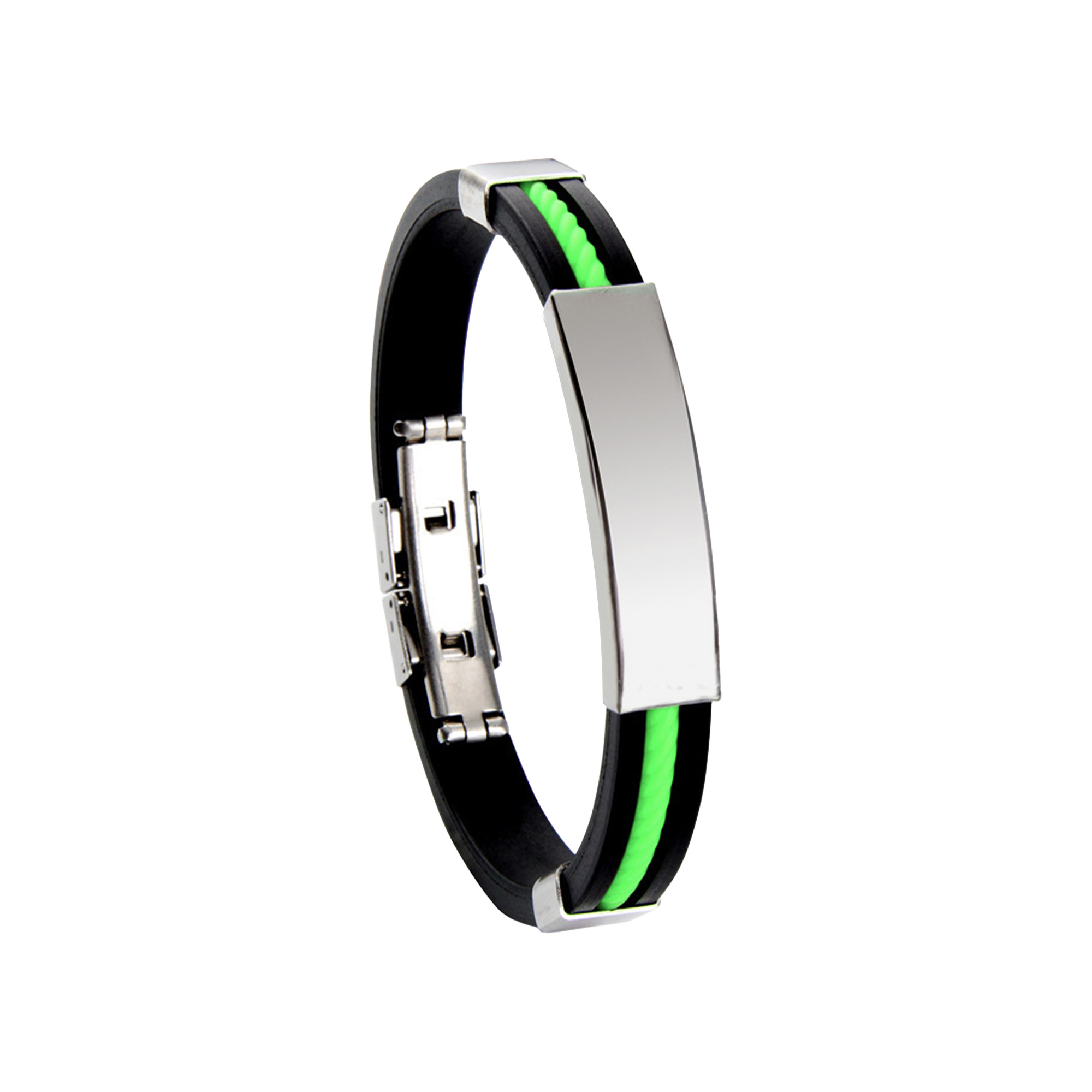 Elevate your brand presence with our Glide Lock Clasp Colour Silica Bracelet, featuring a classic hook buckle. Our bracelet is crafted from smooth polyurethane and a metal arc in silver, black, or gold. Custom logos or brand messages through engraving on the metal arc can enhance the effect of brand promotions. Perfect for sports events, team activities, or promotional campaigns, our bracelet offers both modern functionality and effective brand visibility. Choose from 10 strap core colours, including green, dark blue, light blue, white, black, orange, purple, pink, red and yellow. Sizing: Silicone bracelet: L225 x W11mm Metal: L42 x W11mm. Materials: Polyurethane, Metal. Price Notes: The colour of the strap core needs to be selected when placing the order. Print Position: Metal. Price includes: 4week Engraving. 4week. Setup is included.