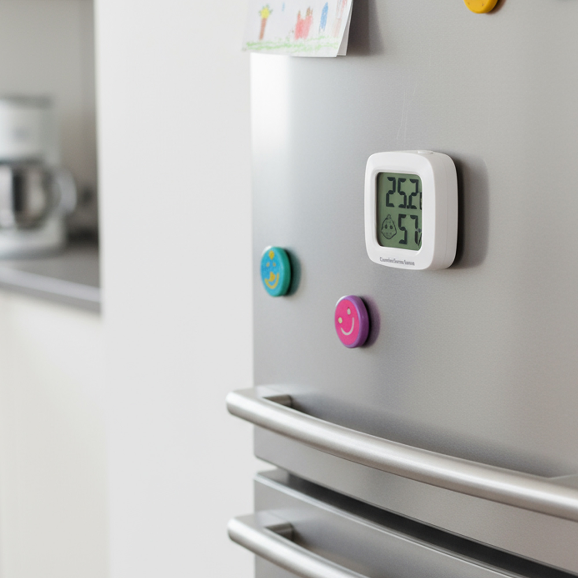 Promote your brand with our Mini Digital Temperature Humidity Thermometer, crafted from durable ABS plastic. Our temperature humidity thermometer monitors environments accurately with a temperature range from -20 C to 60 C(-4 to 140 ) and humidity range from 10% to 99%. If the temperature and humidity are not within a comfortable range, a sad face will appear. Personalise through engraving to display your logo with clear, long-lasting detail. Ideal for monitoring conditions in homes, offices, or storage areas, our temperature humidity thermometer can enhance the brand visibility in daily use. Sizing: 45 x 45 x 13mm. Materials: ABS plastic. Price Notes: Temperature error: 1 C, Humidity error: 8%RH. Print Position: Front (the entire edges). Price includes: 3week Engraving. 3week. Setup is included.
