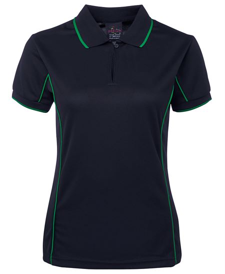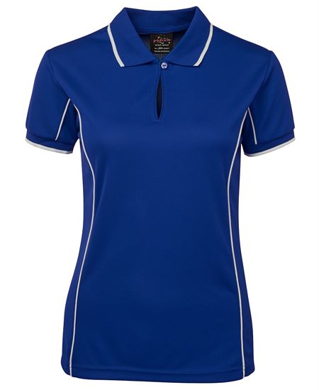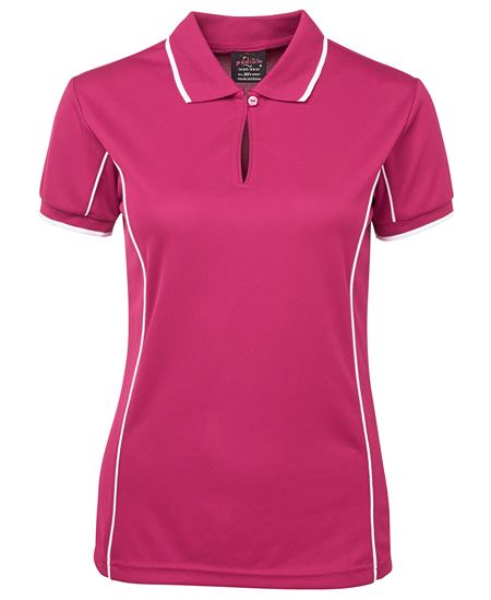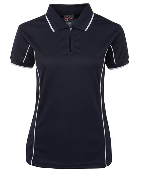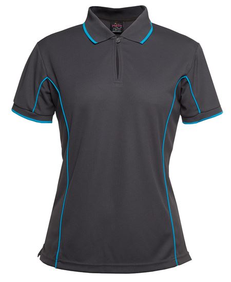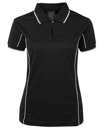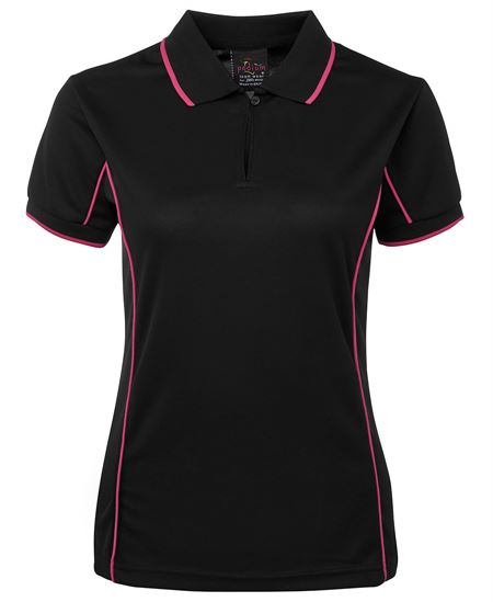 Urban fit , 100% Polyester, 160gsm pique knit fabric , Podium Coola moisture wicking fabric designed to help keep you cool and dry , Ladies style features the placket in a distinctly stylish 1-button design , Straight hem with side splits , Easy care, quick drying fabric , Complies with Standard AS 4399:2020 for UPF Protection. Colours: Aqua/White, Black/Aqua, Black/Gold, Black/Grey, Black/Orange, Black/Pea Green, Black/Pink, Black/Purple, Black/Red, Black/White, Charcoal/Aqua, Dark Red/White, Forest/White, Hot Pink/White, Navy/Green, Navy/White, Purple/White, Royal/White. Sizes: 8, 10, 12, 14, 16, 18, 20, 22, 24