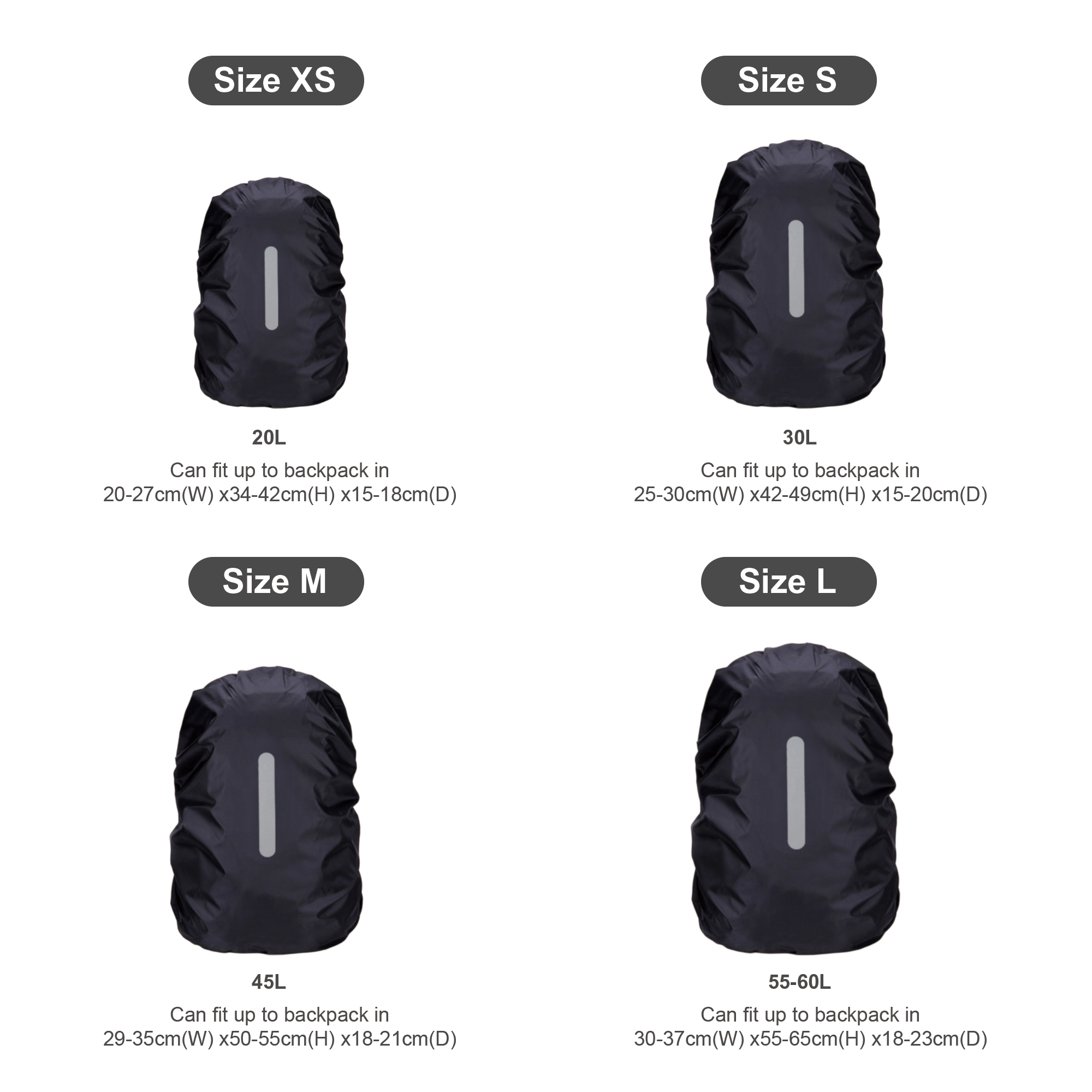 This Reflective Backpack Rain Cover is a perfect outdoor companion, available in 4 sizes, which can be conveniently folded up into a zipper bag when not in use. Featuring a reflective strap for better visibility and an elastic circle for backpack fastening which allows you to add 2 more stripes as additional service. Our quality rain cover is made of 210T polyester, that is water and sunshine resistant. With full colour heat transfer to showcase your design, you can choose from 6 colours. Sizing: Size XS 20L Can fit up to backpack in 20-27cm w 34-42cm h 15-18cm d Size S 30L Can fit up to backpack in 25-30cm w 42-49cm h 15-20cm d Size M 45L Can fit up to backpack in 29-35cm w 50-55cm h 18-21cm d Size L 55-60L Can fit up to backpack in 30-37cm w 55-65cm h 18-23cm d. Materials: Polyester. Price Notes: Price includes full colour print on the backpack rain cover, and a 1 col version of the same design on the carry pouch. Print Position: Front/On the zipper bag. Price includes: 3week Heat Transfer Full Colour. 3week. Setup is included.