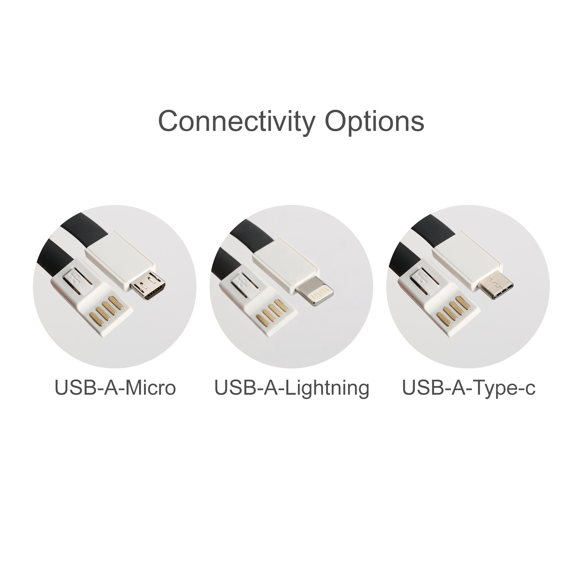 This TPE Lanyard Charging Cable easily integrates into any promotional campaign, provides both data transfer and charging functions, and is tougher, slicker, and more flexible than any other advertising cable out there. Employees and consumers alike will love this cable and your promotional campaign will be a success! - Certifications: RoHS, CE - Data transfer function - Charging function. Sizing: Locking head: 3.4 x 1.5 x 1.0cmLanyard cable: 90 x 0.85cm. Materials: TPE(Lanyard cable),ABS(Locking head). Price Notes: Swivel Hook and PE bag included. Connector Type Options: USB-A to Micro/USB-A to Lightning/USB-A to Type-C. Print Position: Front,Back. Price includes: 3week Digital UV Print. 3week. Setup is included.
