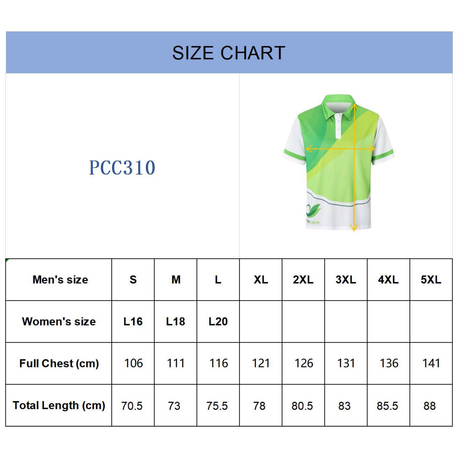 Save the planet and promote your brand with our 100% RPET sublimated polo. This polo is made from RPET fibers, constructed from GRS certified post-consumer recycled polyester. Full-sublimation coloured print helps to brand your logo, name, number and club slogan while ensuring long-lasting use without fade. Not only show off your sense of fashion, but also represents your support for sustainability and environmental protection. Additional customization options include: long sleeves, additional pockets on the chest and customized labels. Sizing: Size S: chest=106cm Body length=70.5cm Size M: chest=111cm Body length=73cmSize L: chest=116cm Body length=75.5cmSize XL: chest=121cm Body length=78cmSize 2XL: chest=126cm Body length=80.5cmSize 3XL: chest=131cm Body length=83cmSize 4XL: chest=136cm Body length=85.5cmSize 5XL: chest=141cm Body length=88cm. Materials: 150gsm RPET POLY BIRDS EYE. Price Notes: For RPET sublimation style, MOQ refers to minimum order quantity per design. For sizing guide, please refer to our sizing chart slide in the product images. Price includes: 4week Sublimation. 4week. Setup is included.
