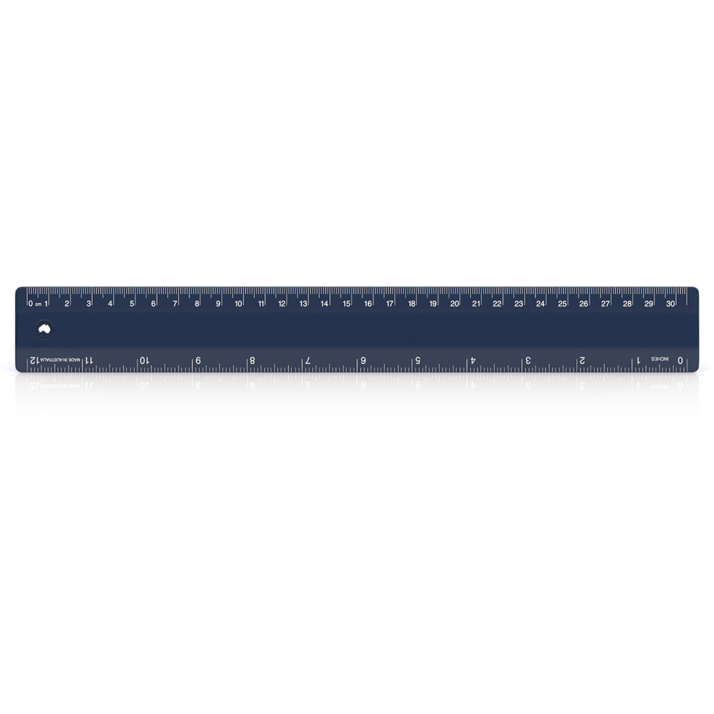 Australian made, semi rigid plastic 30cm ruler with unique map of Australia moulded into ruler. Scale is printed in centimeters and inches and can be printed in a single colour to match logo. Available in a large range of colours.PMS colour match for orders over 5000 units.
