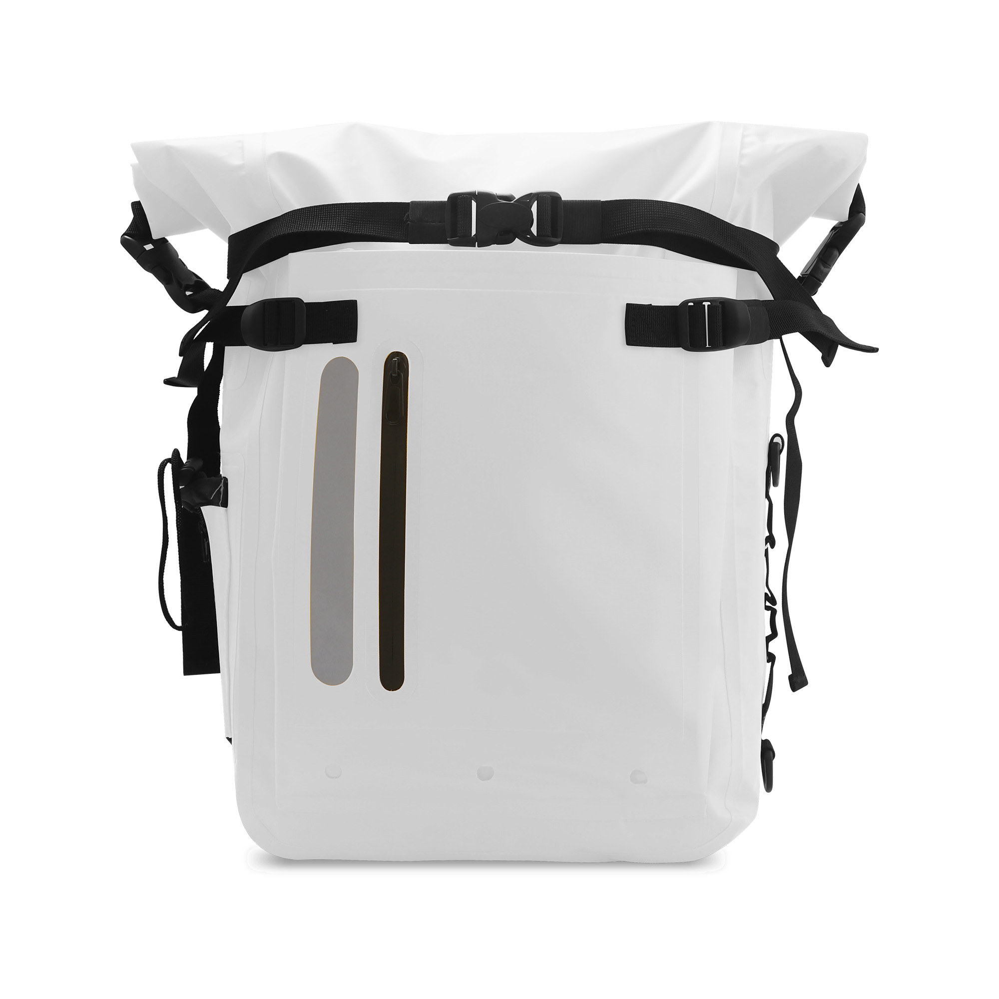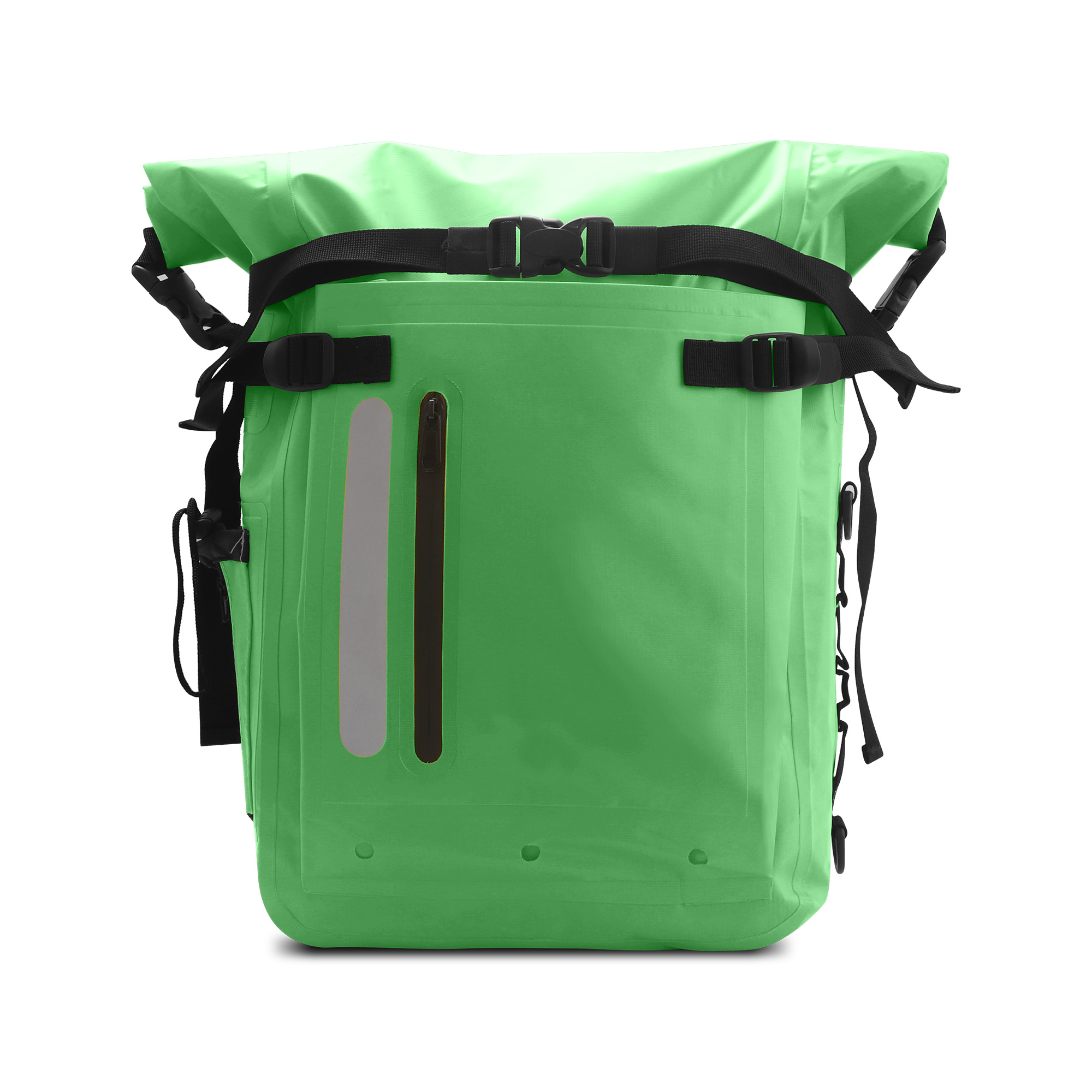 This Waterproof Roll Top Backpack can conveniently adjust its capacity, featuring a front zipper pocket for essentials, a front pocket for diving fins, 2 adjustable side pockets for bottles and a main pocket. Our quality backpack is made of PVC, that is waterproof and durable, making it a wonderful diving companion. With screen print to showcase your design, you can choose from 2 colours, black and yellow. Sizing: Roll-top:30cm w 44cm h 15cm d Expanded: 30cm w 69cm h 15cm d. Materials: PVC. Print Position: Front.7week